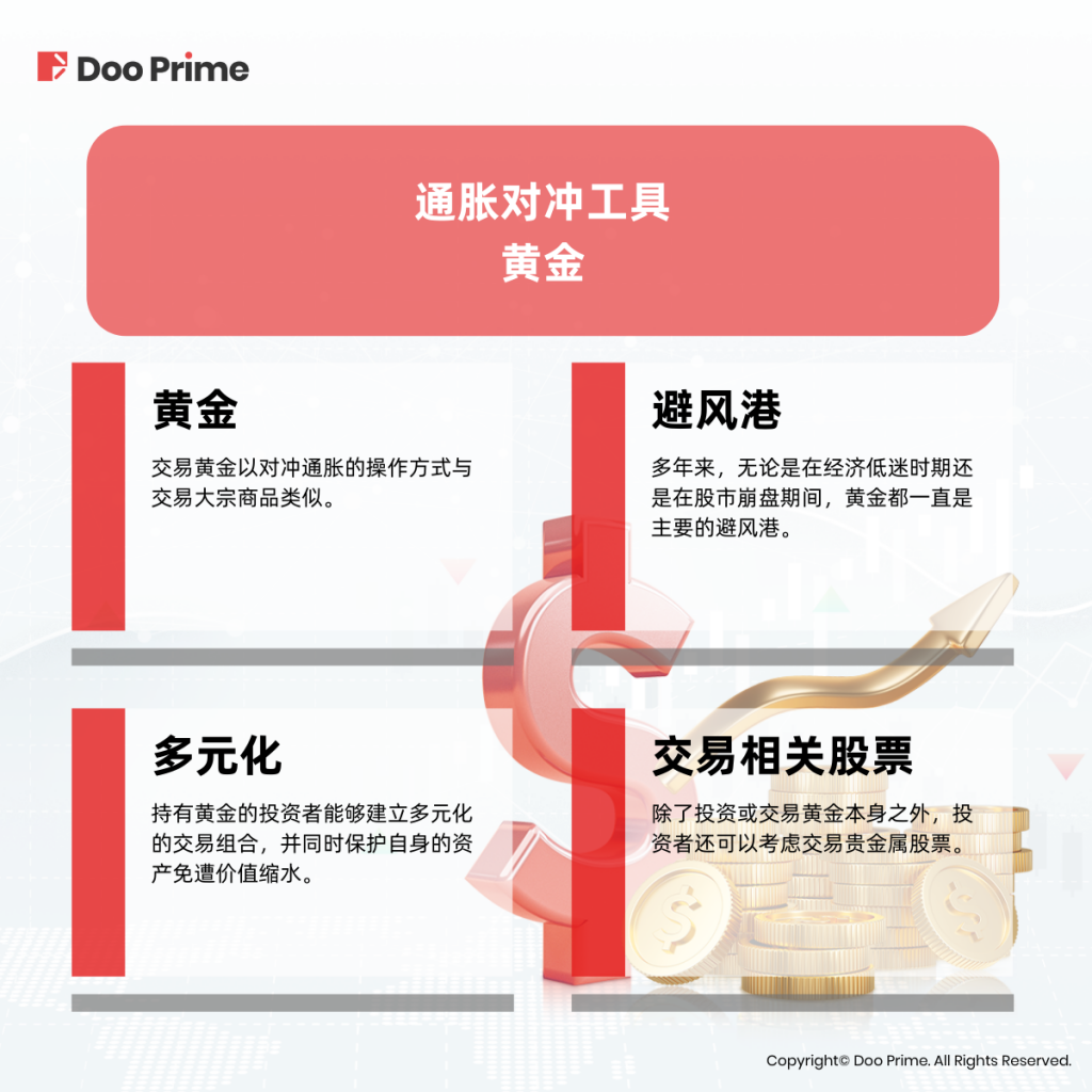交易黄金以对冲通胀的操作方式与交易大宗商品类似。两者价值均以美元衡量及交易。更重要的是,石油和黄金的价格也随着通货膨胀水涨船高。