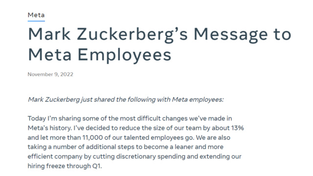 Meta 业绩承压,18 年来首次大规模裁员