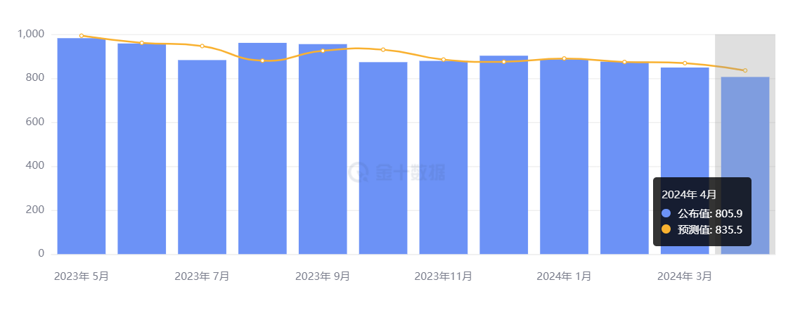 美国劳工统计局公布的报告显示,4 月 JOLTS 职位空缺为 805.9 万人,创 2021 年 2 月以来的最低水平,低于预期的 835.5 万人;3 月前值则从 848.8 万人下修至 836 万人。