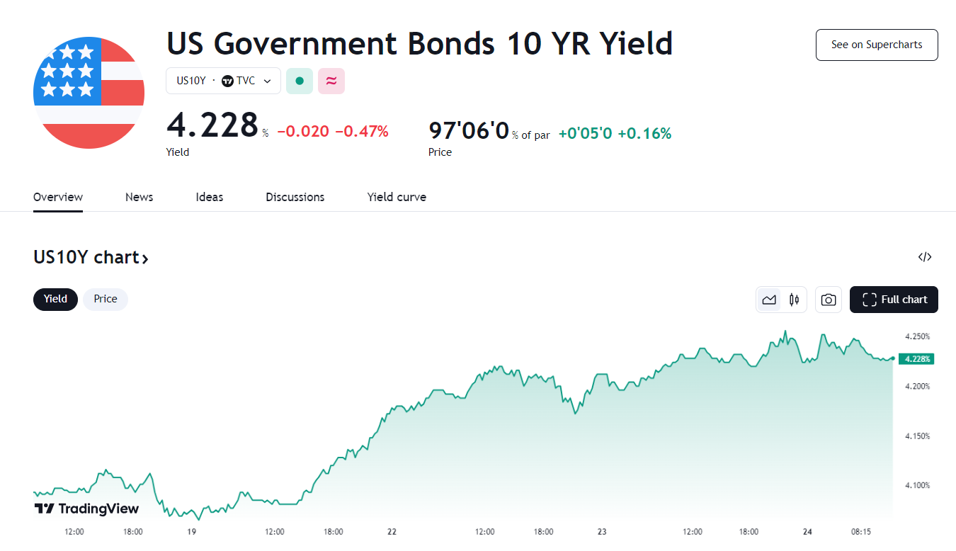 10 月 23 日,美国国债市场的抛售行情仍没有丝毫减弱的迹象。在对美联储降息预期广泛重新定价以及博彩市场特朗普胜率高涨的情况下,美国国债价格连续第三天下跌,导致美债收益率曲线齐齐来到了 4% 关口上方。