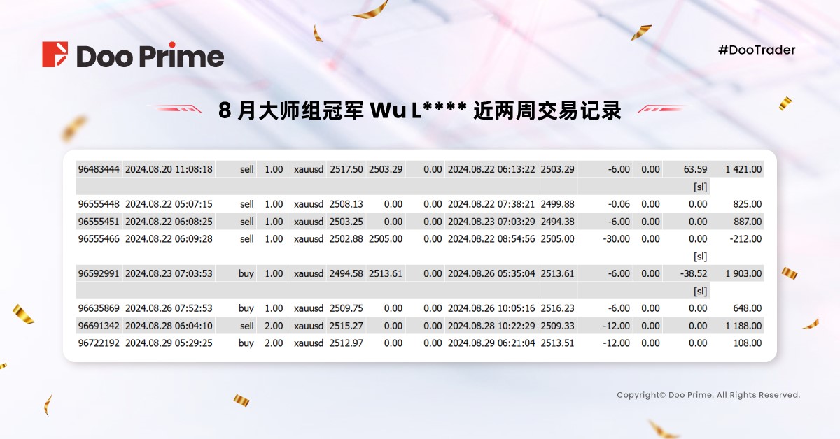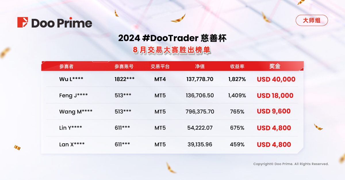 2024 #DooTrader 慈善杯 8 月交易大赛冠军出炉,单笔订单盈利 13 万美金!