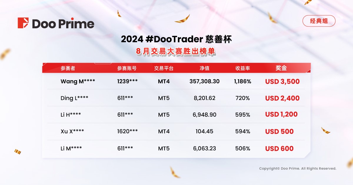 与此同时,2024 #DooTrader 慈善杯 9 月交易大赛也已经在本周同步启动,诚邀各路交易精英继续争锋对决,一展交易实力!>>>>>>立即点击报名参加!