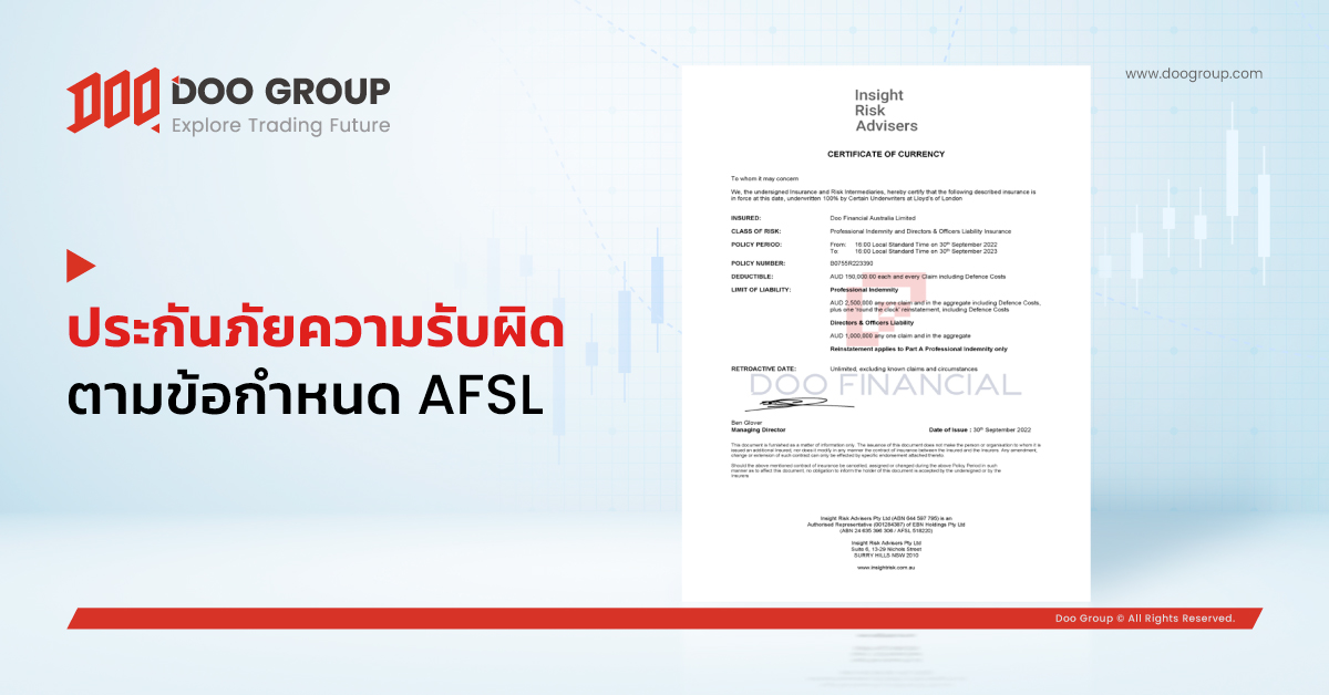 Doo Financial บริษัทพี่ของ Doo Prime ซื้อประกันภัยความรับผิดทางวิชาชีพ ตรงตามข้อกำหนด AFSL