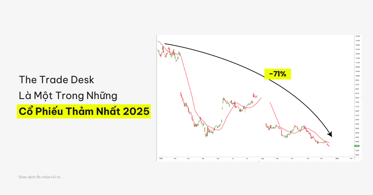 The Trade Desk là một trong những cổ phiếu giảm giá đáng chú ý nhất trong nhóm công nghệ vốn hóa lớn. Lo ngại về nhu cầu quảng cáo, cạnh tranh gia tăng và đà tăng trưởng chậm lại đã gây áp lực lên tâm lý thị trường. Có thể nói, diễn biến của cổ phiếu đã phản ánh được mức độ “khắc nghiệt” của thị trường đối với bất kỳ dấu hiệu giảm tốc nào ở các cổ phiếu có mức định giá cao.