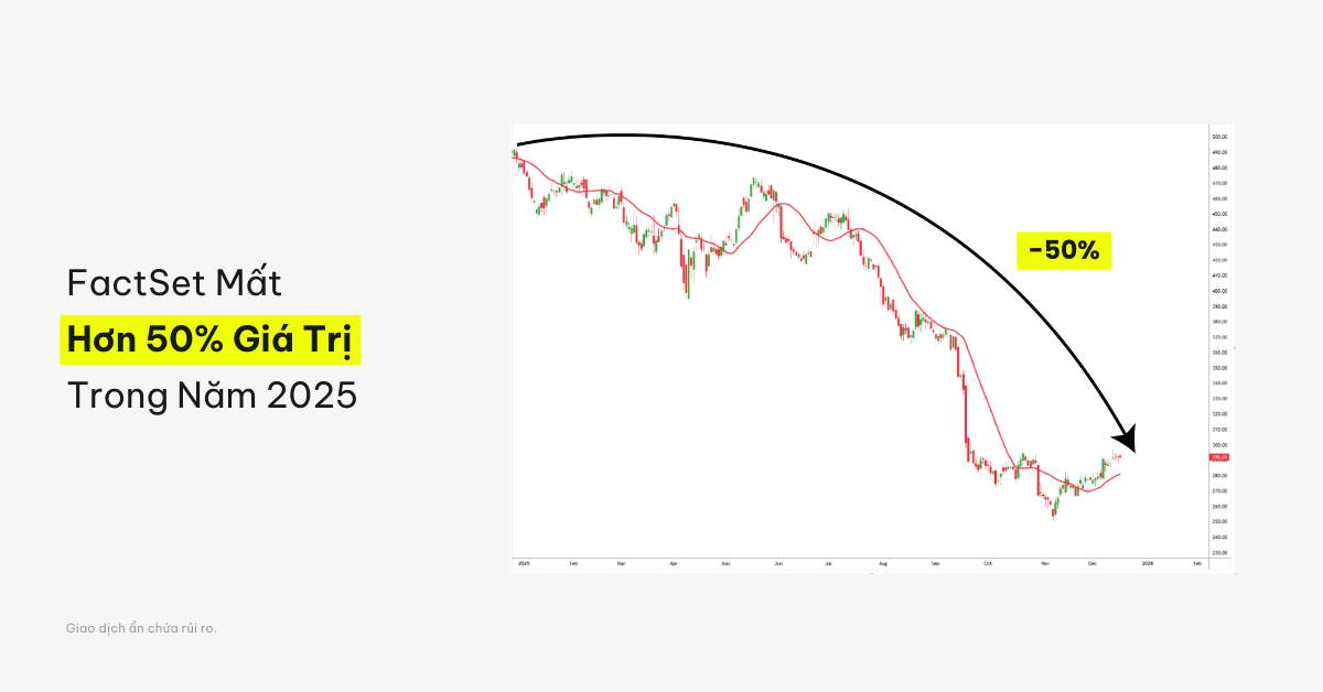 FactSet gặp khó khăn khi nhà đầu tư đánh giá lại triển vọng dài hạn của các nhà cung cấp dữ liệu và phân tích tài chính truyền thống. Bên cạnh đó, sự trỗi dậy của các công cụ dựa trên AI và sự thay đổi trong nhu cầu của khách hàng làm dấy lên nghi ngại về tính bền vững của sự tăng trưởng đối với mã FDS. Chính những nhân tố trên đã kéo giá cổ phiếu đi xuống trong suốt cả năm.